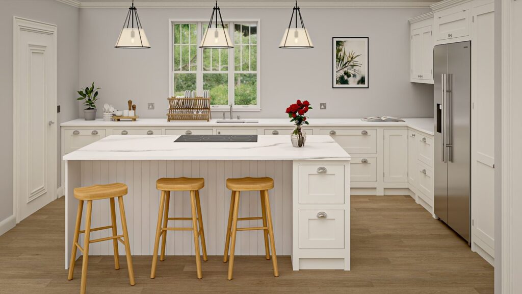 In modern homes or urban apartments, the same Shaker principles take on a fresh character. Smooth paint finishes, quartz worktops, and understated hardware turn classic cabinetry into something quietly modern.